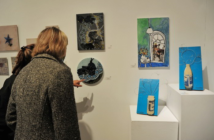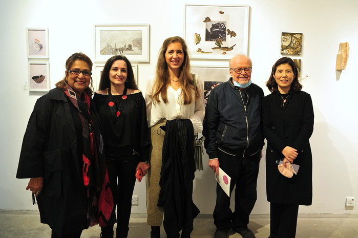 | ▲ 관람객들이 한-요르단 작가들의 협업 작품들을 감상하고 있다. 전시회는 내년 1월 2일까지 계속된다. |