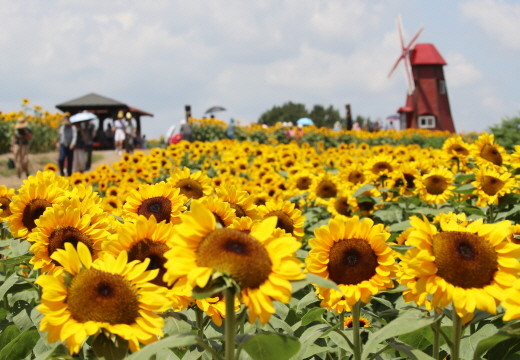 | ▲전국적으로 무더위가 기승을 부린 2일 경남 함안군 법수면 강주해바라기마을에서 관광객들이 활짝 핀 해바라기를 구경하고 있다.(사진= 뉴스1) |