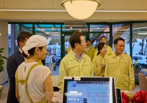 이 대통령은 횟집과 숙박업소, 편의점 등을 돌며 제한급수에 따른 물 부족으로 인한 불편사항 등을 청취하고 이들의 노고를 격려했다.