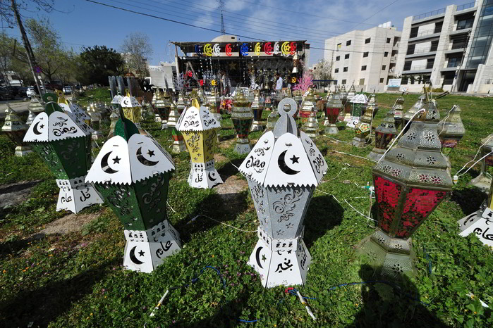 [프레스뉴스] 채정병 특파원=30일(현지시간) 요르단 암만 주택가 공터에 들어선 라마단 장식가게 앞에 파누스(아랍전통등)들이 놓여 있다.  해마다 이슬람 금식월인 라마단이 다가오면 무슬림들은 이를 기념하기 위해 초승달, 별, 파누스 장식물로 집안을 꾸민다.  이슬람력에 따라 올해는 4월 13일경 부터 한달간 진행된다.