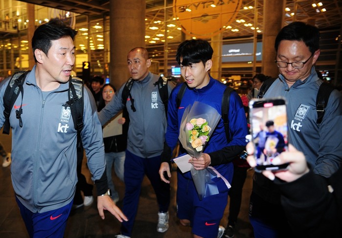 [프레스뉴스] 채정병 특파원=2026 북중미월드컵 아시아 3차 예선 B조 팔레스타인과의 6차전(19일)을 위해 대한민국 축구대표팀이 17일(현지시간) 쿠웨이트발 전세기로 경기가 열릴 요르단 암만에 도착한 가운데 손흥민이 공항을 나오고 있다.