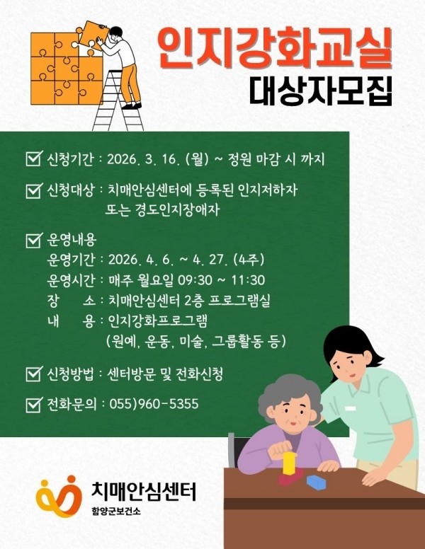 자세한 사항은 함양군 치매안심센터(☎ 055-960-5355)로 문의하면 된다.