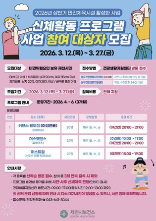 제천시보건소, 체육시설 연계 비만예방 프로그램 참여자 모집
