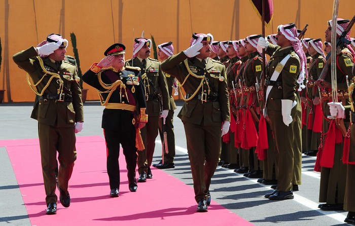 [프레스뉴스] 채정병 특파원=11일(현지시간) 제19대 요르단 의회 3차 정기회기 개회식에 참석한 압둘라 2세 요르단 국왕이 의장대를 사열하고 있다. 개회연설에서 국왕은 현재 벌어지고 있는 이-팔 사태와 관련해 “안보와 평화, 안정을 위해서는 정의롭고 포괄적인 평화가 선행되어야 한다.”고 언급 하면서 “두국가 해법에 기초해 팔레스타인이 주권국가가 되는 것이 학살의 악순환을 끝내는 유일한 길”이라고 강조했다.