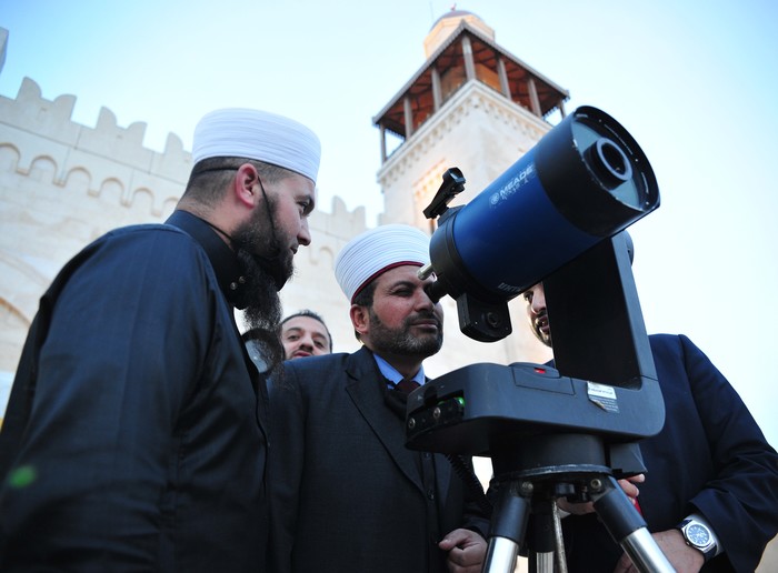 [프레스뉴스] 채정병 특파원=1일(현지시간) 올해 라마단 시작일 결정을 위한 초승달 관측이 요르단 킹 후세인 빈 탈랄 모스크에서 열린 가운데 한 이맘(이슬람종교지도자)이 관측장비를 이용해 달의 가시여부를 확인하고 있다. 초승달이 확인된 사우디아라비아, 카타르, 아랍에미리트 등은 2일(토요일)부터, 요르단은 3일(일요일)부터 한달간의 라마단 금식월이 시작된다.