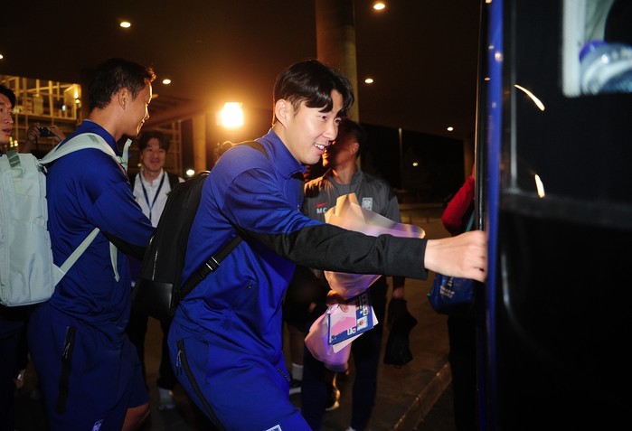 [프레스뉴스] 채정병 특파원=2026 북중미월드컵 아시아 3차 예선 B조 팔레스타인과의 6차전(19일)을 위해 대한민국 축구대표팀이 17일(현지시간) 쿠웨이트발 전세기로 경기가 열릴 요르단 암만에 도착한 가운데 손흥민이 숙소로 향하는 버스에 탑승하고 있다.