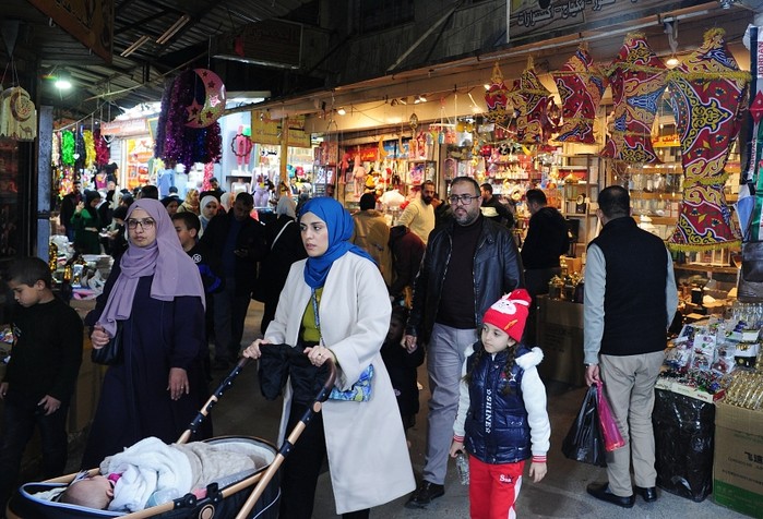 [프레스뉴스] 채정병 특파원=11일(현지시간) 이슬람 금식월인 라마단 하루 전날 밤 요르단 암만 다운타운의 라마단 장식 상점들 앞에 시민들이 붐비고 있다.