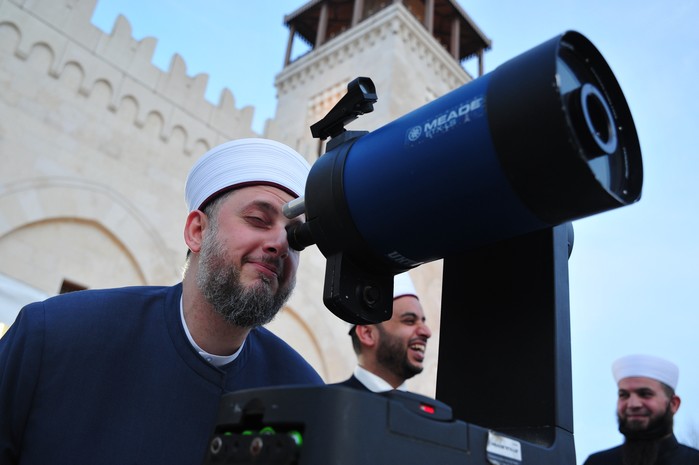 [프레스뉴스] 채정병 특파원=1일(현지시간) 올해 라마단 시작일 결정을 위한 초승달 관측이 요르단 킹 후세인 빈 탈랄 모스크에서 열린 가운데 한 이맘(이슬람종교지도자)이 관측장비를 통해 달의 가시여부를 확인하고 있다. 초승달이 확인된 사우디아라비아, 카타르, 아랍에미리트 등은 2일(토요일)부터, 요르단은 3일(일요일)부터 한달간의 라마단 금식월이 시작된다.