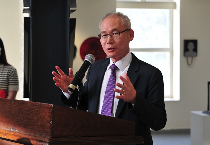 | ▲ 이재완 주 요르단 대사가 한-요르단 수교 60주년 기념 전시회 개막연설을 하고 있다. |