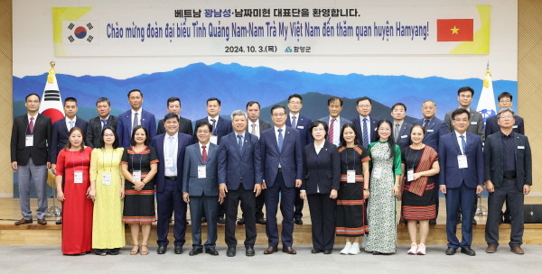 함양군에 따르면 ‘제19회 함양산삼축제’ 개막일인 지난 3일 오후 국제우호교류도시인 베트남 꽝남성·남짜미현 및 중국 양주시 대표단(이하 대표단)의 방문을 환영하는 행사가 열렸다.