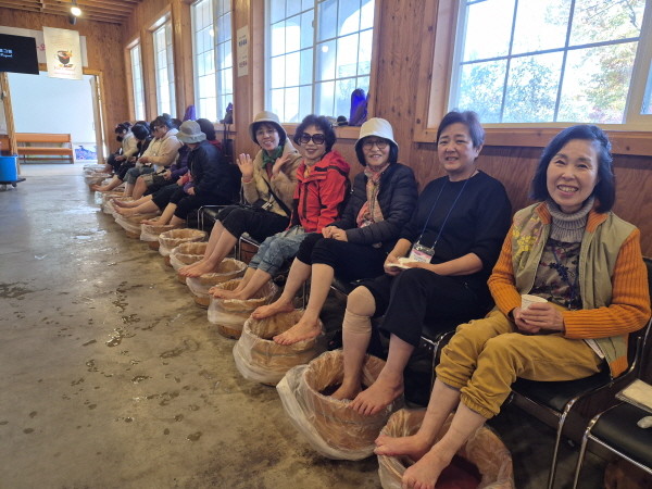 이들은 와인족욕, 뱅쇼 만들기, 숲해설, 산림치유 등 다양한 프로그램을 체험하며 대봉산 숲길에서 아로마 치유와 함께 심신을 재충전하는 시간을 가졌다.