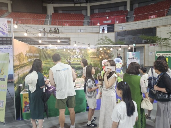홍보부스는 꽃창포와 생태습지가 어우러진 자연경관을 그대로 담아낸 포토존으로 구성되어 도심 속 생태관광지로서 거창창포원의 매력을 홍보하고 있다.