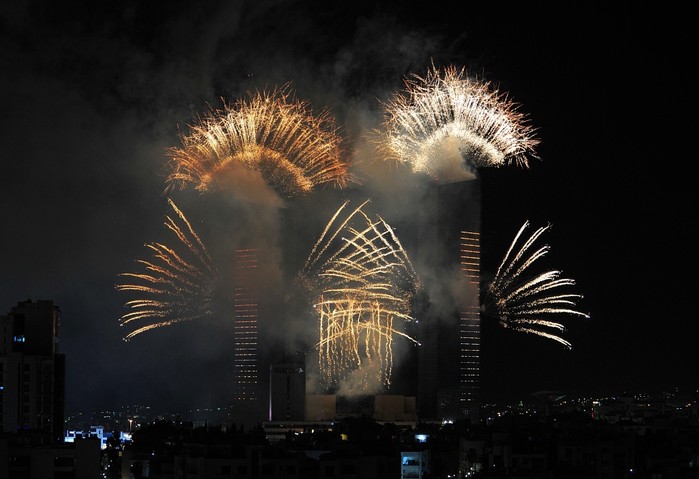 [프레스뉴스] 채정병 특파원=25일(현지시간) 요르단 독립 79주년을 축하하는 불꽃놀이가 수도 암만의 밤하늘을 수놓고 있다.