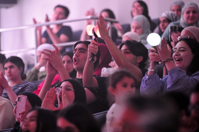 [프레스뉴스] 채정병 특파원=12일(현지시간) 2025 케이팝 월드 페스티벌 요르단 지역예선에 참가한 12개팀(댄스 9팀, 보컬 3팀)이 올해 10월 창원에서 열리는 본선 진출을 위해 저마다의 기량을 뽐낸 가운데 참가자들을 응원하기 위해 온 관객들이 환호하고 있다.