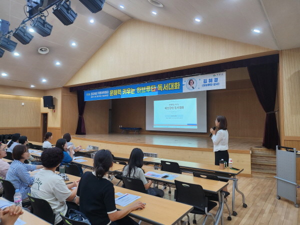 이날 강연은 질문배움 연구소 대표로 활동 중인 김혜경 강사를 초빙해 ‘문해력 키우는 하브루타 독서대화’라는 주제로 진행됐다.
