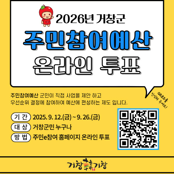 투표 결과는 오는 10월 열리는 거창군 주민참여예산위원회 최종 심사를 거쳐 확정될 예정이다.
