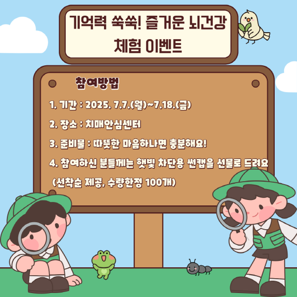 이벤트 프로그램은 보건소 치매안심센터 내에서 운영되며, 지역 주민 누구나 자유롭게 참여할 수 있다.