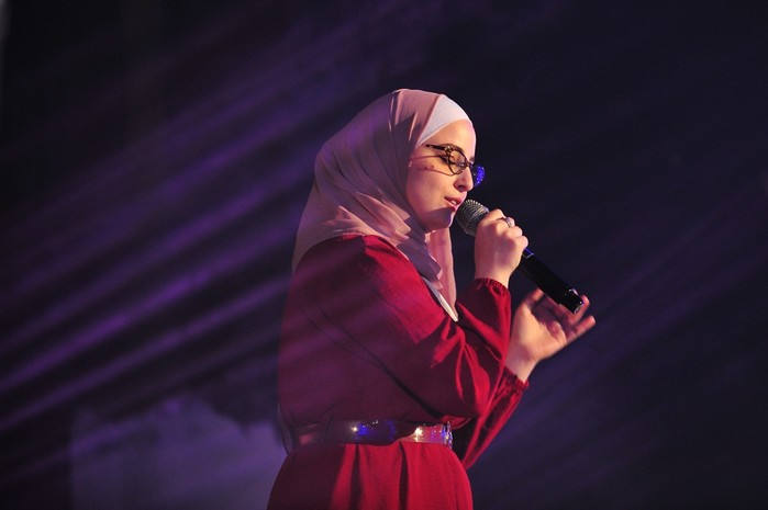 [프레스뉴스] 채정병 특파원=12일(현지시간) 2025 케이팝 월드 페스티벌 요르단 지역예선에 참가한 12개팀(댄스 9팀, 보컬 3팀)이 올해 10월 창원에서 열리는 본선 진출을 위해 저마다의 기량을 뽐낸 가운데 한 참가자가 태양의 '눈코입'을 부르고 있다.
