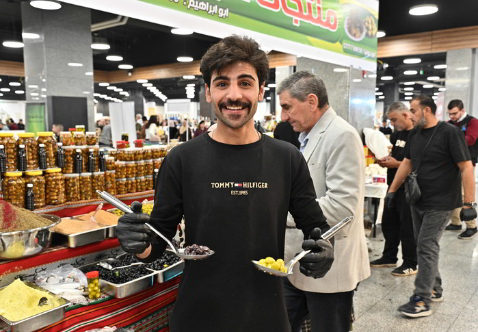 [프레스뉴스] 채정병 특파원=27일(현지시간) 매년 올리브 수확시기에 맞춰 열리는 요르단 올리브 축제가 암만의 한 전시장에서 열린 가운데 한 판매점원이 절인 올리브를 보여주고 있다. 올리브 수확은 일년에 딱 한번으로 이 시기가 되면 우리나라 김장과 비슷하게 각 가정에서는 생 올리브를 사서 직접 담거나 절인 올리브를 구입한다.