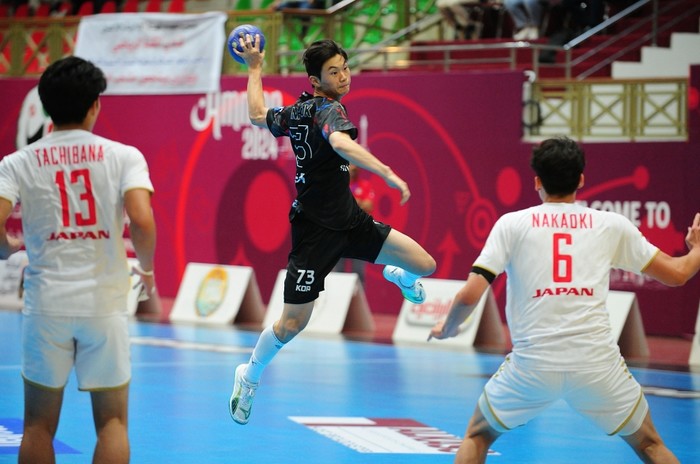 [프레스뉴스] 채정병 특파원=25일(현지시간) 요르단 암만 프린세스 수마이야 경기장에서 열린 제18회 아시아 남자 주니어 핸드볼 선수권대회 한-일 결승전에서 우리 대표팀이 32대27로 아쉽게 패하며 준우승을 거둔 가운데 문진혁 선수가 날렵한 자세로 슛하고 있다.