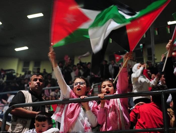[프레스뉴스] 채정병 특파원=10일(현지시간) 2023년 아시아축구연맹(AFC) 아시안컵 결승전 요르단 대 카타르의 경기에서 요르단 어린이들이 암만 스포츠시티에 모여 열띤 응원을 펼치고 있다.
