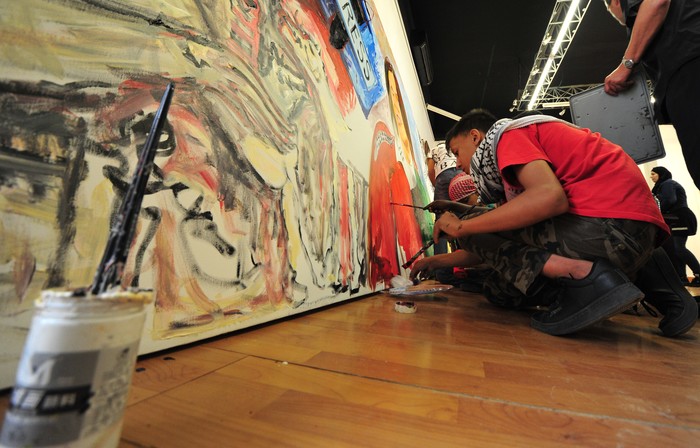 [프레스뉴스] 채정병 특파원=18일(현지시간) 지난 11일 팔레스타인 웨스트뱅크 제닌에서 취재 중 이스라엘군의 총격으로 사망한 쉬린 아부 아클레(여.51) 알자지라 기자를 추모하는 그림 "인간 평화의 소리" 제작이 요르단 조형미술가협회에서 열린 가운데 한 어린이가 그리기에 집중하고 있다.