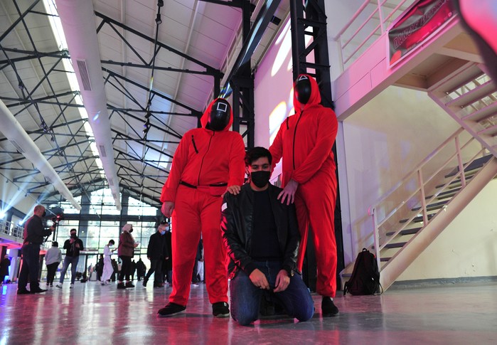 [프레스뉴스] 채정병 특파원=24일(현지시간) 한류문화행사 'Feel Korea 2021'이 요르단 암만 라스 알 아인 갤러리에서 열린 가운데 오징어게임의 장면을 재현해보고 있다.