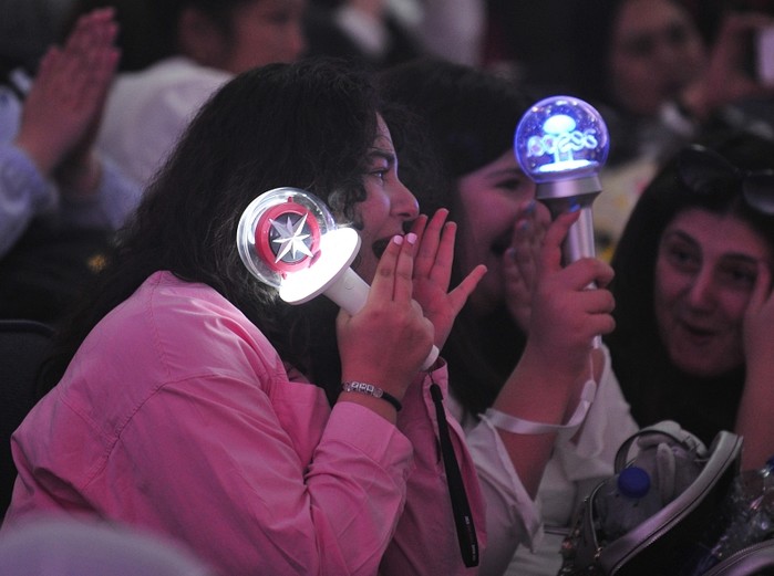 [프레스뉴스] 채정병 특파원=12일(현지시간) 2025 케이팝 월드 페스티벌 요르단 지역예선에 참가한 12개팀(댄스 9팀, 보컬 3팀)이 올해 10월 창원에서 열리는 본선 진출을 위해 저마다의 기량을 뽐낸 가운데 관객들이 케이팝 응원봉을 들고 참가자들을 응원하고 있다.