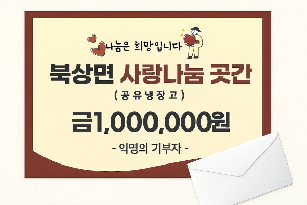 이번에 기부된 성금은 생활필수품과 식료품 등을 구입해 북상면 내 ‘사랑나눔곳간(공유냉장고)’에 비치해 면민들이 이용할 수 있도록 제공된다.