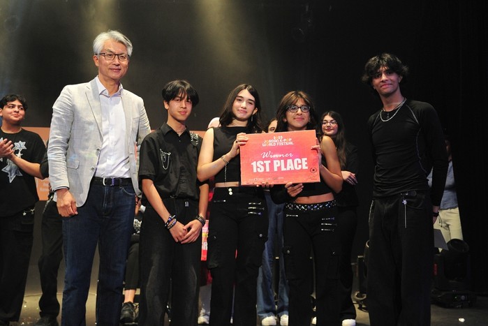 [프레스뉴스] 채정병 특파원=12일(현지시간) 2025 케이팝 월드 페스티벌 요르단 지역예선에 참가한 12개팀(댄스 9팀, 보컬 3팀)이 올해 10월 창원에서 열리는 본선 진출을 위해 저마다의 기량을 뽐낸 가운데 예선 1위에 오른 4인조 댄싱팀이 김필우 주 요르단 대사와 기념촬영을 하고 있다. 중동의 각국 지역예선 1,2위팀은 또 한번의 영상심사를 통해 최종 3팀(댄스 2팀, 보컬 1팀)안에 들어야 본선진출 기회가 주어진다.