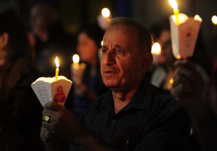 [프레스뉴스] 채정병 특파원=21일(현지시간) 요르단 암만의 탈라 알 알리 가톨릭 교회에서 팔레스타인의 평화와 가자지구 희생자들을 애도하는 촛불미사가 열린 가운데 한 노인이 촛불을 들고 미사를 드리고 있다.