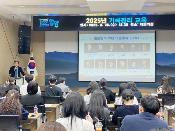 백삼종 함양부군수는 과거 정부기록보존소 근무 경험을 바탕으로 대통령기록물과 조선왕조실록 사례를 들어 기록물의 중요성을 강조하고, 정책기안 보고서 작성 요령에 대한 특강도 진행해 직원들의 큰 호응을 얻었다.