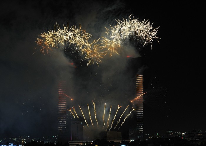 [프레스뉴스] 채정병 특파원=25일(현지시간) 요르단 독립 79주년을 축하하는 불꽃놀이가 수도 암만의 밤하늘을 수놓고 있다.