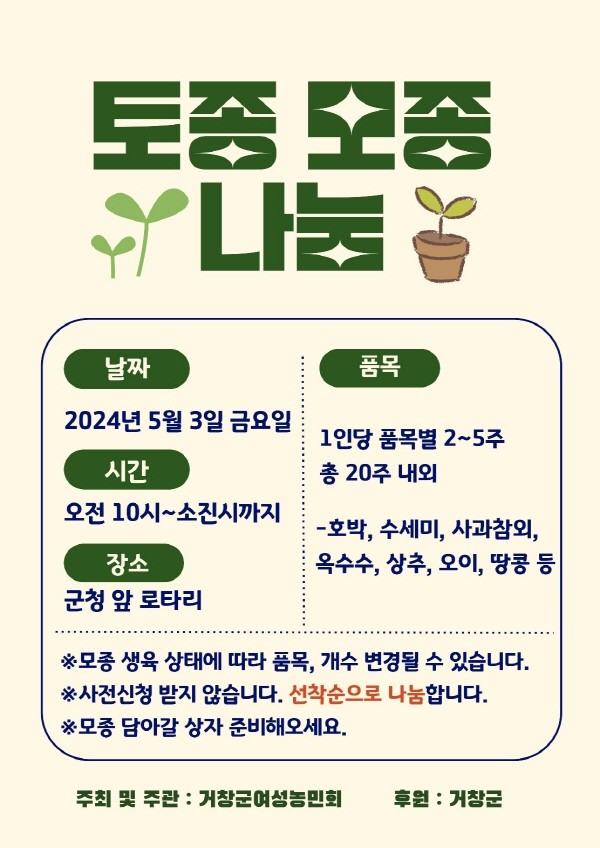 | ▲ 모종나눔행사 포스터(사진=거청군) |