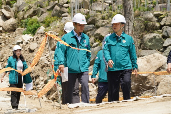 이날 남 청장. 이병철 거창 부군수 등이 함께 신원면 수원리 일대 산사태 복구사업 현장을 방문해 관계 공무원을 격려하고 공사 추진 사항을 보고 받았으며 우기 산림재난 예방 및 대응체계에 관한 다양한 의견을 나눴다.