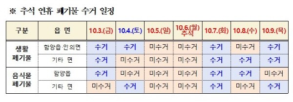 ▲ 추석 연휴 폐기물 수거 일정(사진=함양군) |