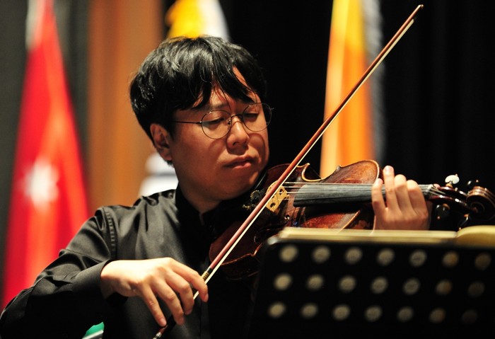 [프레스뉴스] 채정병 특파원=29일(현지시간) 베토벤과 차이콥스키 곡으로 구성된 일라이나이 피아노 트리오의 공연이 요르단 암만 알 후세인 문화센터에서 열린 가운데 바이올리니스트 박주경이 아름다운 선율로 연주하고 있다.