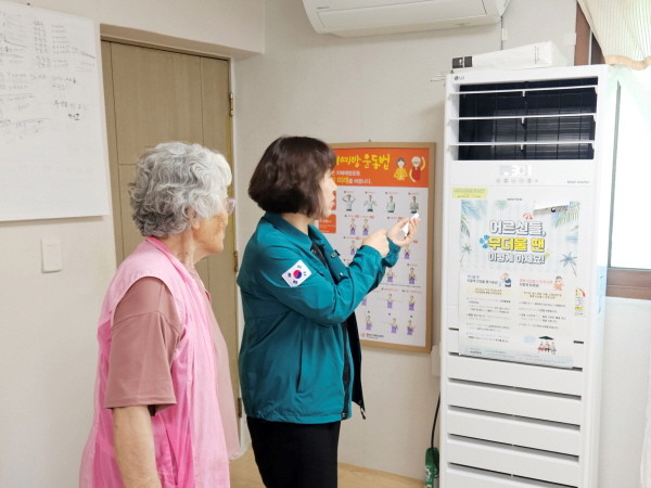 이에 담당 부서인 노인복지과에서는 13일 관내 경·노모당을 방문하여 냉방기 정상 작동 여부 점검 및 경로당 이용 어르신을 대상으로 폭염대비 안전행동 요령을 전파하고, 여름철 식중독 예방을 위해 철저한 급식위생 관리를 당부했다.