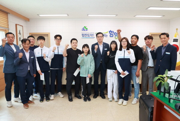 진병영 함양군수는 지난 22일 오후 2시 군수실에서 출전선수와 지도자 등 8명이 참석한 가운데 육상에 출전하는 선수들과 선수들의 기량 향상을 위해 노력한 지도자에게 격려했다.