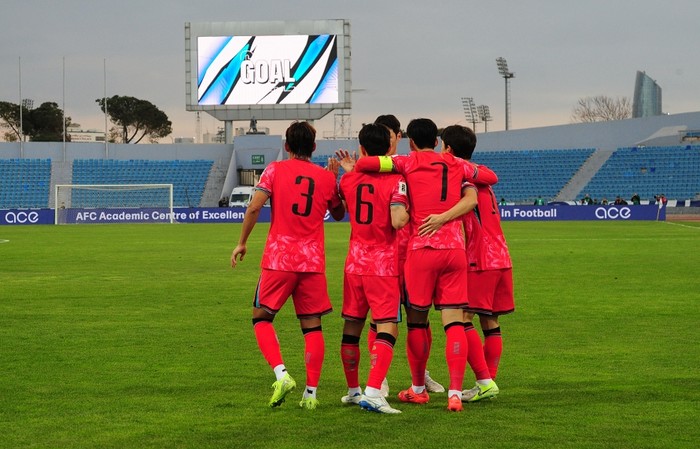 [프레스뉴스] 채정병 특파원=19일(현지시간) 요르단 암만 국제 경기장에서 열린 2026 북중미 월드컵 아시아 3차 예선 B조 6차전 대한민국 대 팔레스타인의 경기가 1-1 무승부로 끝난 가운데 전반 16분에 터진 손흥민의 동점골에 선수들이 기쁨을 나누고 있다.