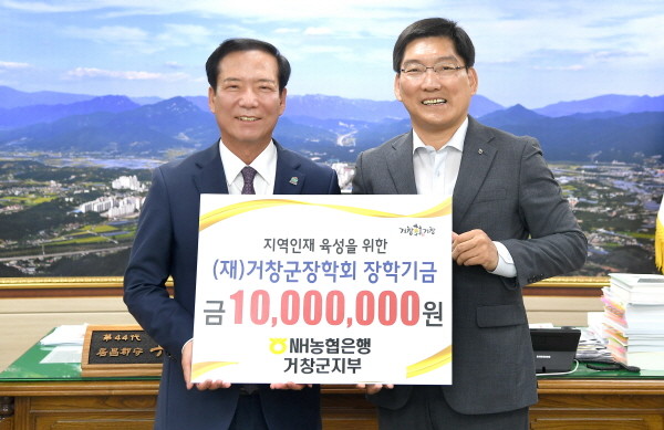 | ▲ 농협은행 거창군지부 거창군 장학회 장학금 기탁(사진=거창군) |