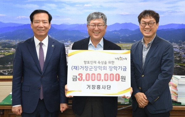 이어 거창흥사단에서 이상갑 대표 등 3명이 군수실을 방문해, 그동안 월성청소년수련원 등 관내 여러 시설을 수탁 운영하면서 얻은 수익금의 일부인 300만 원을 장학금으로 기탁했다.