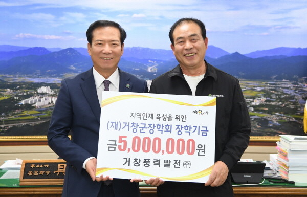 | ▲ 거창풍력발전(주) 거창군장학회 장학금 기탁(사진=거창군) |