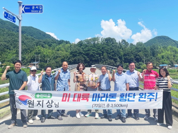 | ▲ 원지상씨 마라톤 횡단 완주(사진=함양군) |