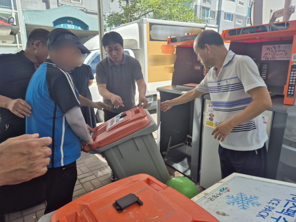 ‘음식물류 폐기물 종량기(RFID : Radio Frequency Identification, 무선 전자식별)’는 배출자가 전용카드나 비밀번호로 인증한 뒤 음식물류 폐기물을 배출하면, 해당 배출자의 정보와 배출 무게가 자동 전송되어 요금이 정산되는 시스템이다.
