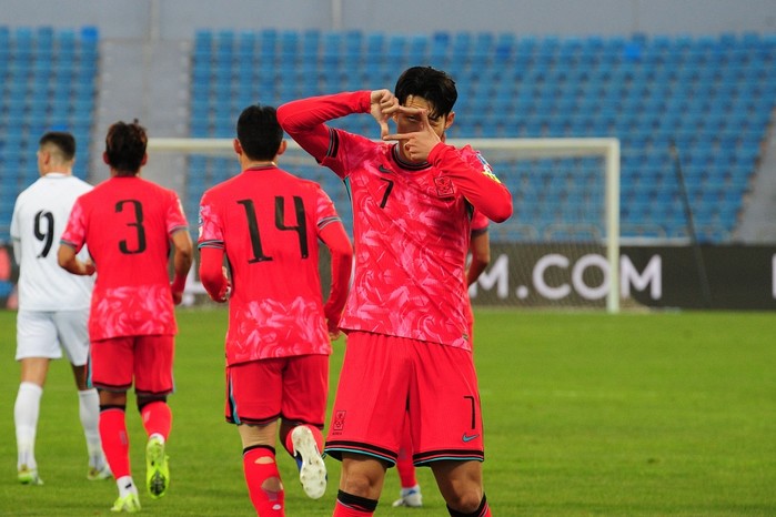 [프레스뉴스] 채정병 특파원=19일(현지시간) 요르단 암만 국제 경기장에서 열린 2026 북중미 월드컵 아시아 3차 예선 B조 6차전 대한민국 대 팔레스타인의 경기가 1-1 무승부로 끝난 가운데 전반 16분, 손흥민이 동점골을 넣고 세리머니를 하고 있다.
