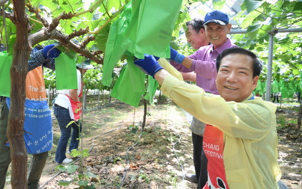 농촌일손돕기에는 구인모 군수, 이태용 NH농협 거창군지부장, 정순명 국립농산물품질관리원 경남지원 거창사무소장, 거창소방서 직원 등 포도농가에 50여 명, 양파 농가에 9명이 참여해 포도 봉지 씌우기, 양파 수확에 구슬땀을 흘렸다.