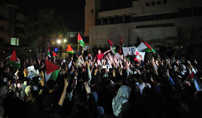 [프레스뉴스] 채정병 특파원=15일(현지시간) 이슬람의 3대 성지 알 아크사 모스크에 대한 이스라엘의 도발로 100명이 넘는 팔레스타인 사상자가 발생한 가운데 요르단 암만 이스라엘 대사관 인근에서 수백명의 시위대가 대사관 철폐를 외치며 이스라엘을 강력히 규탄하고 있다.