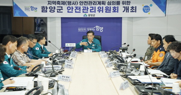 이날 함양군 안전관리위원회에는 함양군과 경찰서, 소방서, 군부대 등 유관기관 단체장이 참여한 가운데 안전사고 없는 행사 운영을 위한 안전 행사계획과 주요 안전관리에 대한 설명, 유관기관 협조사항 등에 대해 논의했다.