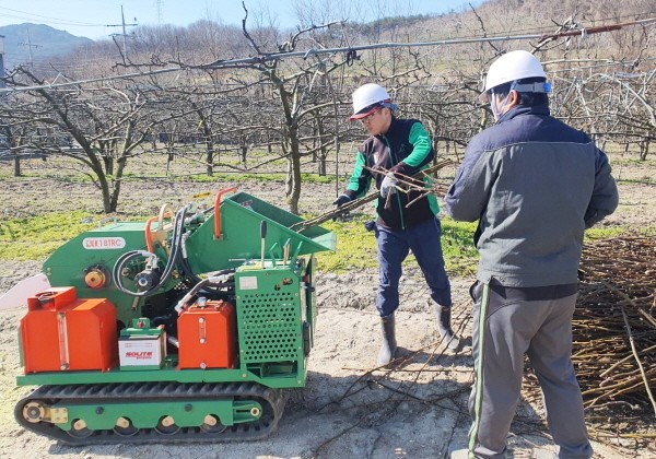 영농부산물 안전처리 지원사업은 농작물을 수확하고 남은 전정 가지, 고춧대, 깻대 등을 파쇄 처리 지원하는 사업으로 영농부산물 파쇄단이 직접 해당 농지를 방문하여 파쇄기를 이용해 부산물을 파쇄한다.